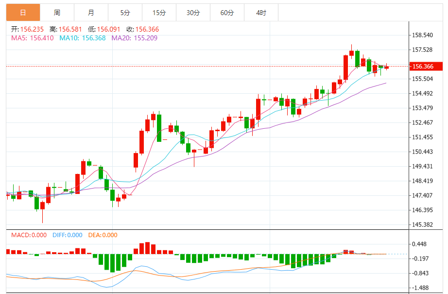 周五(11月28日),美元/日元上涨156.393,暂报156.383,涨幅0.06%。
