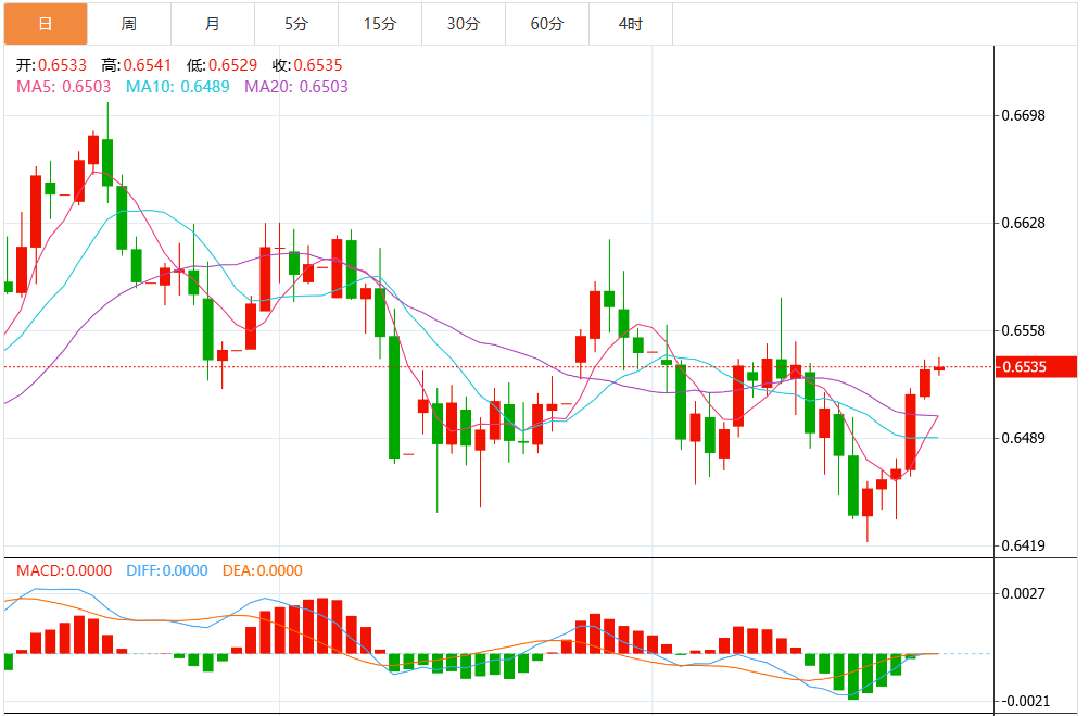 技术分析:澳元测试0.6550阻力位,短期看涨动能增强