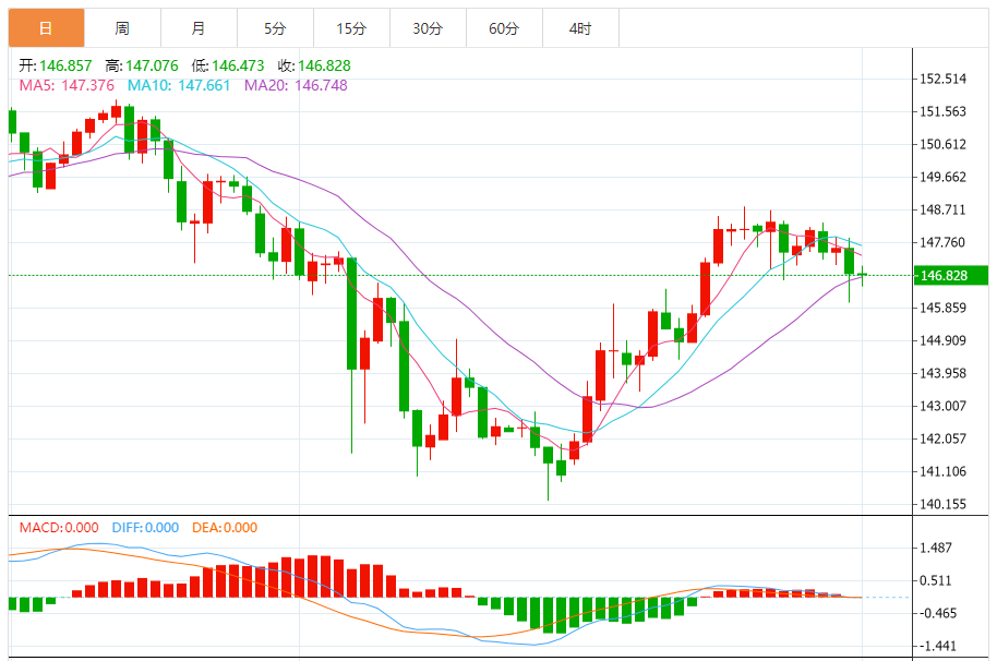 周四(2月1日),美元/日元下跌,暂报146.858,跌幅0.01%。