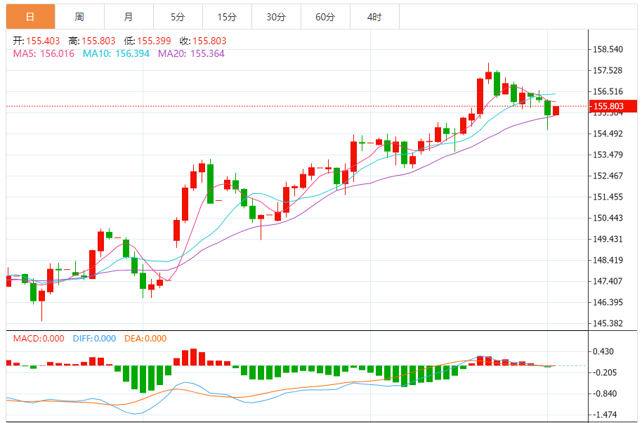 周二(12月2日),美元/日元上涨155.792,暂报155.782,涨幅0.25%。