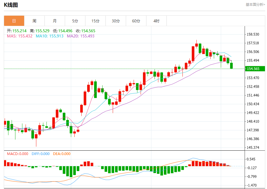 汇价高见155.537,低见154.506。上一交易日,汇价收于155.217。