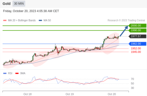 在 1962.00 之上,看涨,目标价位为 1990.00 ,然后为 2000.00 。