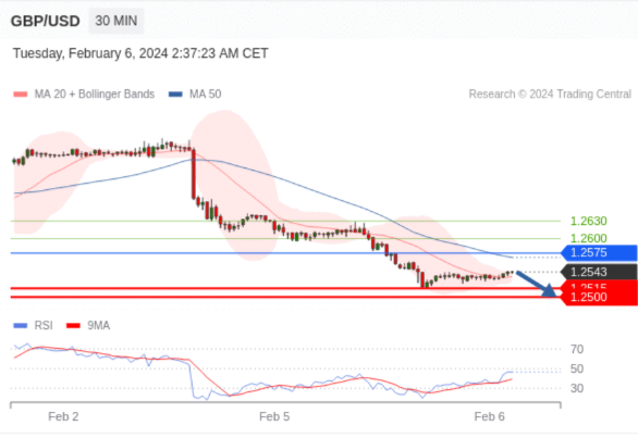 在 1.2575 之下,看跌,目标价位为 1.2515 ,然后为 1.2500 。