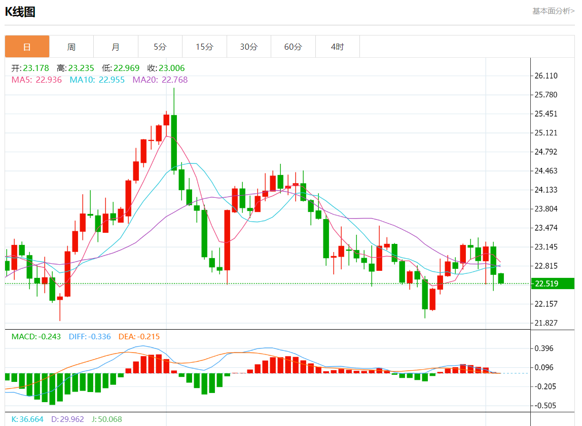 周一欧市盘中,现货白银报22.450,跌幅0.97%。