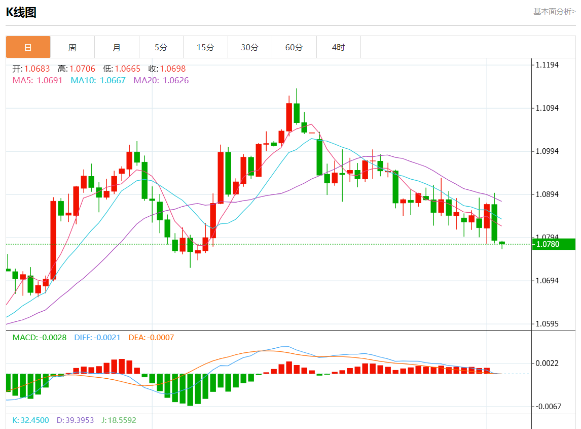 周一欧市盘中,欧元/美元最新报1.0781,日图跌0.06%.