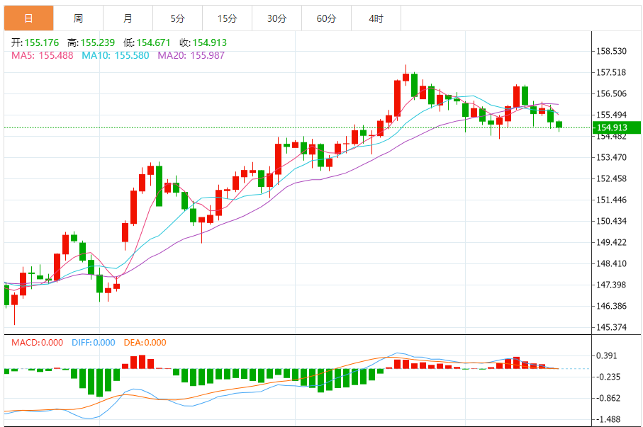 周二(12月16日),美元/日元下跌154.948,暂报154.920,跌幅0.16%。