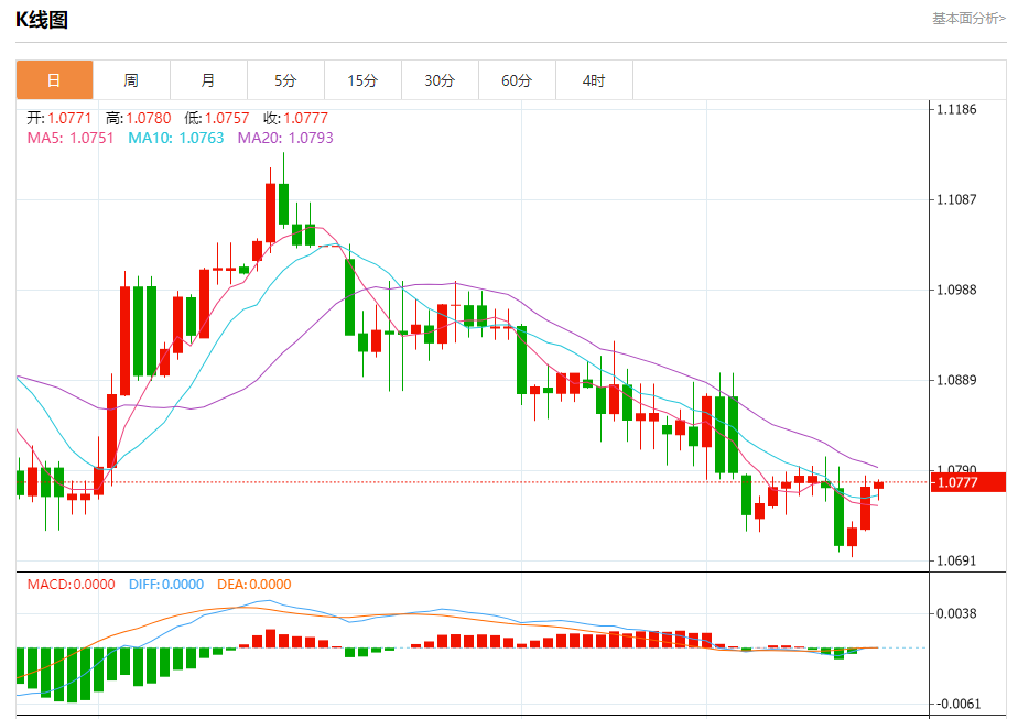 汇价高见1.0780,低见1.0757。上一交易日,汇价收于1.0772。