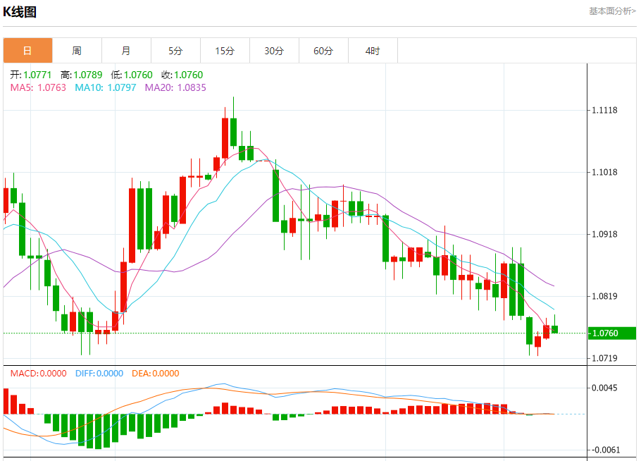 汇价高见1.0789,低见1.0760。上一交易日,汇价收于1.0772。