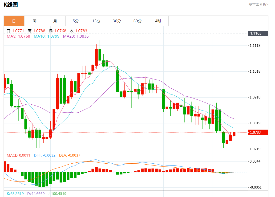 周四欧市盘中,欧元/美元最新报1.0782,日图涨0.10%.