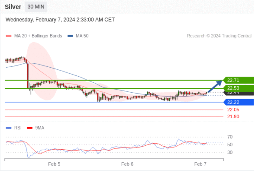 在 22.22 之上,看涨,目标价位为 22.53 ,然后为 22.71 。