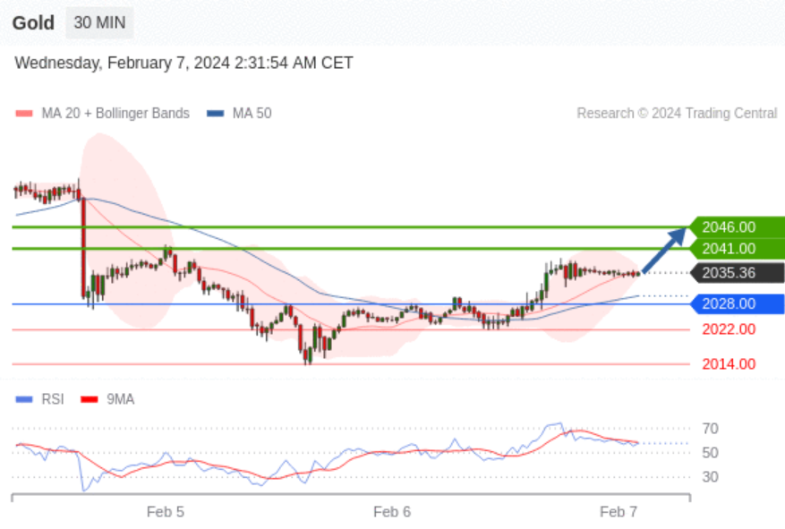 在 2028.00 之上,看涨,目标价位为 2041.00 ,然后为 2046.00 。