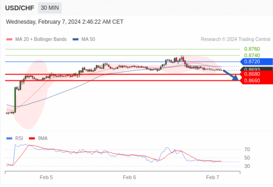在 0.8720 之下,看跌,目标价位为 0.8680 ,然后为 0.8660 。