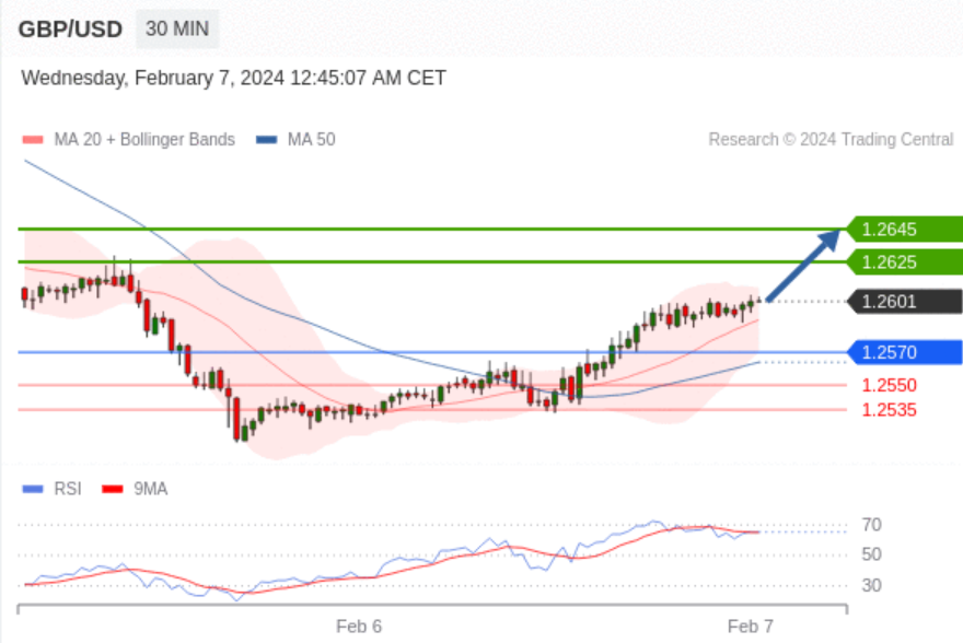 在 1.2570 之上,看涨,目标价位为 1.2625 ,然后为 1.2645 。