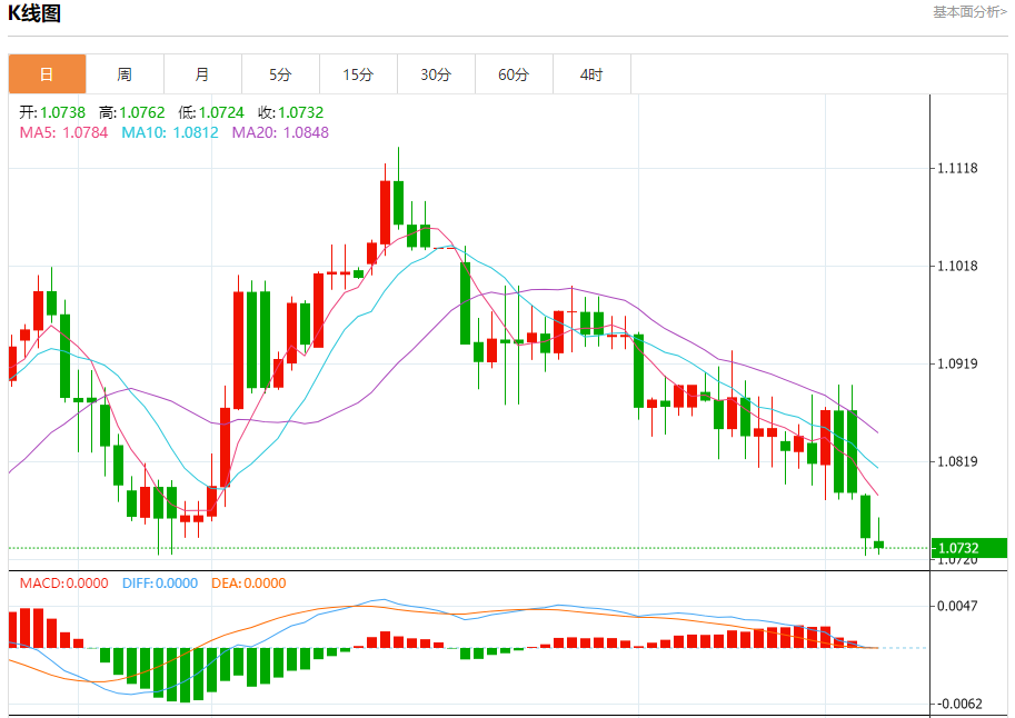 汇价高见1.0762,低见1.0724。上一交易日,汇价收于1.0742。