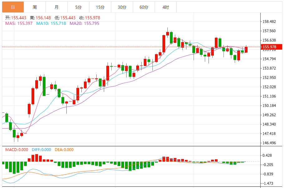 支撑位:155.50 155.62 155.85