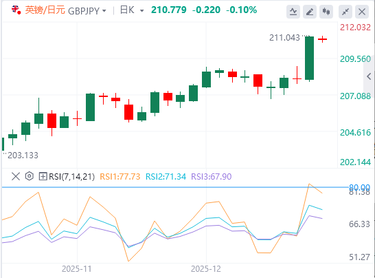 交易者现在期待英国第三季度GDP最终数据的发布,以获得一些动力,因为年底假期季带来的交易量相对稀少。尽管如此,上述基本面背景使得谨慎等待强劲的后续抛售,再确认英镑/日元交叉点在211.00附近形成短期高点。
