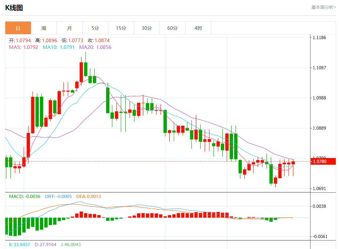 周一欧市盘中,欧元/美元最新报1.0780,日图涨0.07%.