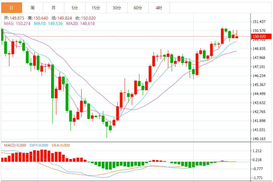 周一(2月19日),美元/日元上涨,暂报150.039,涨幅0.09%。
