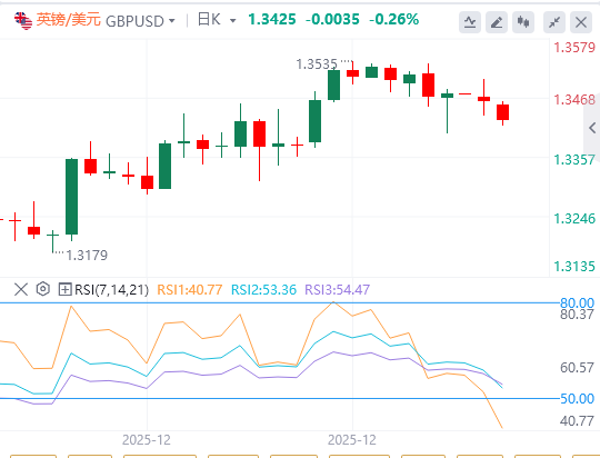 当前障碍位于九日均线1.3455。日收盘若回升至短期均线之上,将重新掌控上行,推动英镑兑美元对试探12月24日达到的三个月高点1.3534。进一步上涨可能推动上涨,接近六个月高点1.3726,随后是1.3788,为2021年10月以来的最高水平。