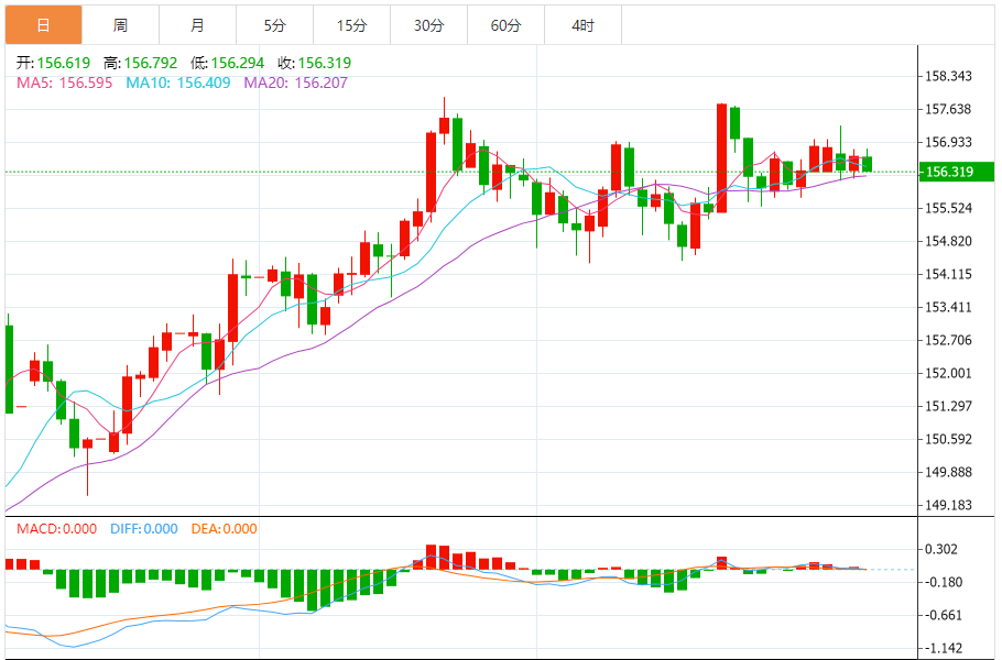 周三(1月7日),美元/日元下跌156.360,暂报156.332,跌幅0.18%。