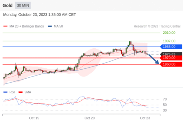 在 1988.00 之下,看跌,目标价位为 1970.00 ,然后为 1960.00 。