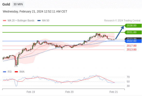 在 2022.00 之上,看涨,目标价位为 2031.00 ,然后为 2038.00 。