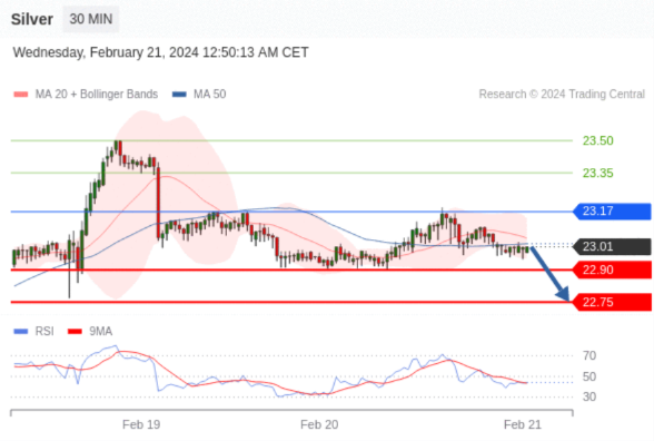 在 23.17 之下,看跌,目标价位为 22.90 ,然后为 22.75 。
