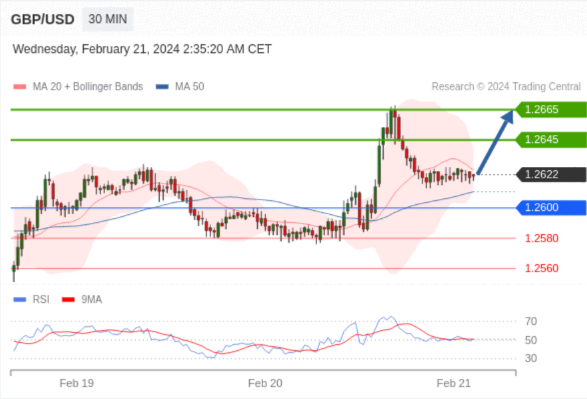 在 1.2600 之上,看涨,目标价位为 1.2645 ,然后为 1.2665 。