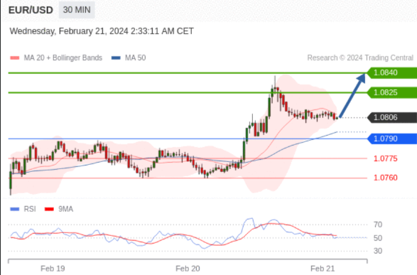 在 1.0790 之上,看涨,目标价位为 1.0825 ,然后为 1.0840 。