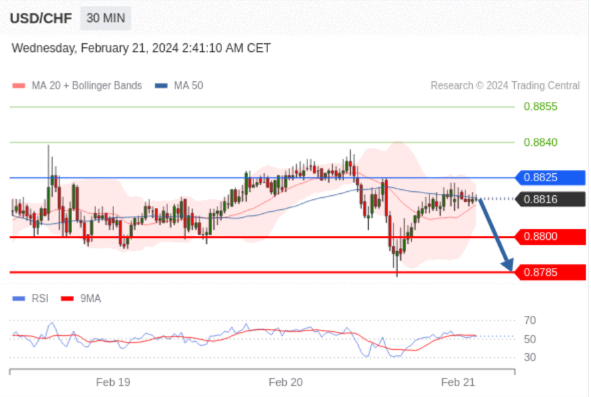在 0.8825 之下,看跌,目标价位为 0.8800 ,然后为 0.8785 。