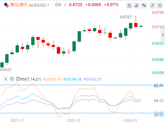 澳元/美元可能目标为0.6766,为2024年10月以来最高水平,随后是上升通道上线0.6840附近。