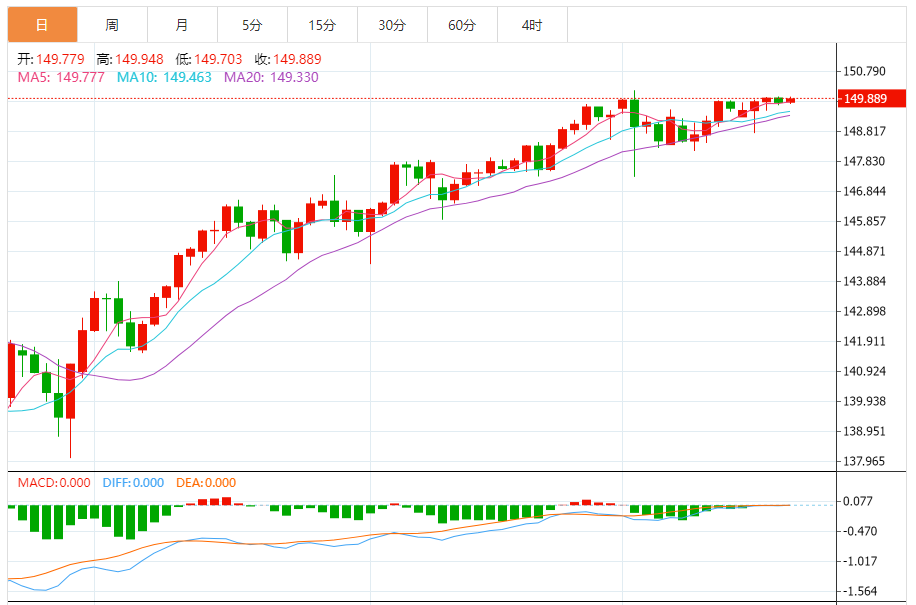 周五(10月20日),美元/日元上涨,暂报149.899,涨幅0.08%。