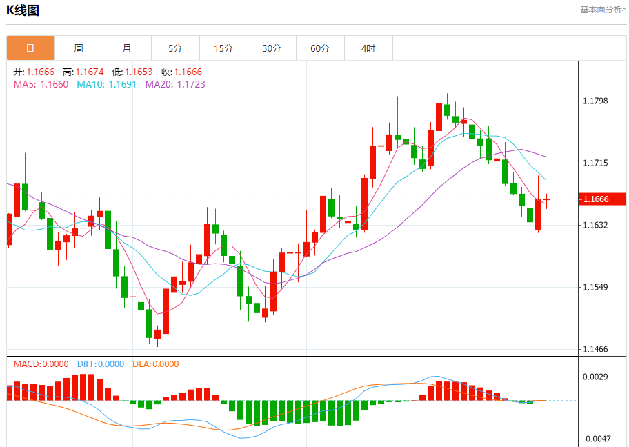 汇价高见1.1674,低见1.1653。上一交易日,汇价收于1.666。