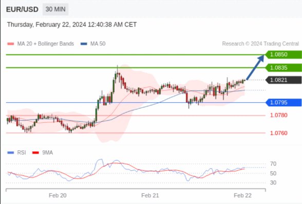 在 1.0795 之上,看涨,目标价位为 1.0835 ,然后为 1.0850 。