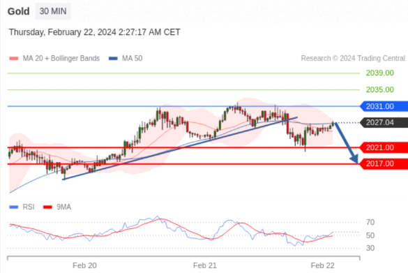 在 2031.00 之下,看跌,目标价位为 2021.00 ,然后为 2017.00 。
