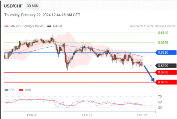 在 0.8810 之下,看跌,目标价位为 0.8780 ,然后为 0.8765 。