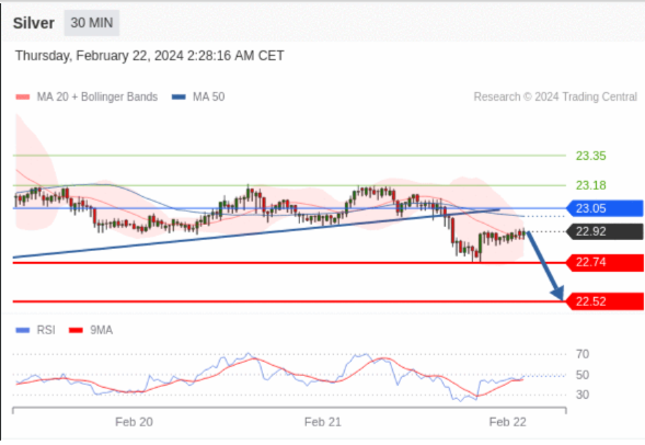 在 23.05 之下,看跌,目标价位为 22.74 ,然后为 22.52 。