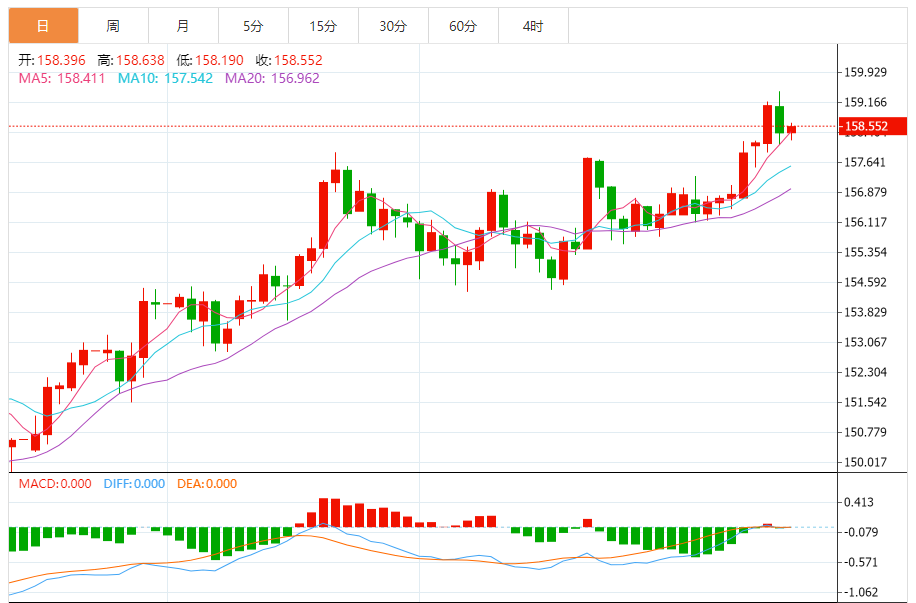 周四(1月15日),美元/日元上涨158.580,暂报158.547,涨幅0.10%。