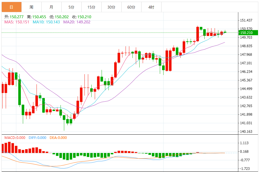 周四(2月22日),美元/日元下跌,暂报150.222,跌幅0.04%。