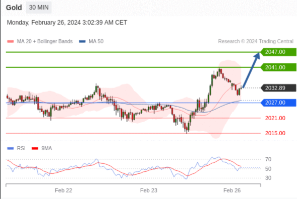 在 2027.00 之上,看涨,目标价位为 2041.00 ,然后为 2047.00 。