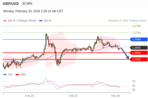 在 1.2690 之下,看跌,目标价位为 1.2650 ,然后为 1.2630 。