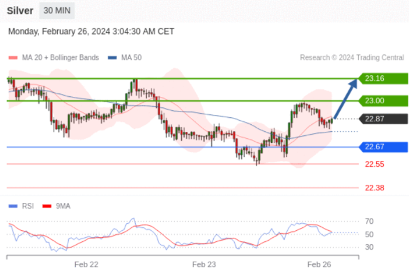 在 22.67 之上,看涨,目标价位为 23.00 ,然后为 23.16 。