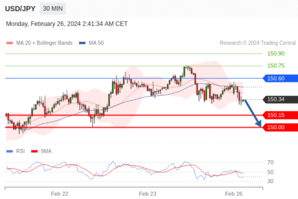 在 150.60 之下,看跌,目标价位为 150.15 ,然后为 150.00 。