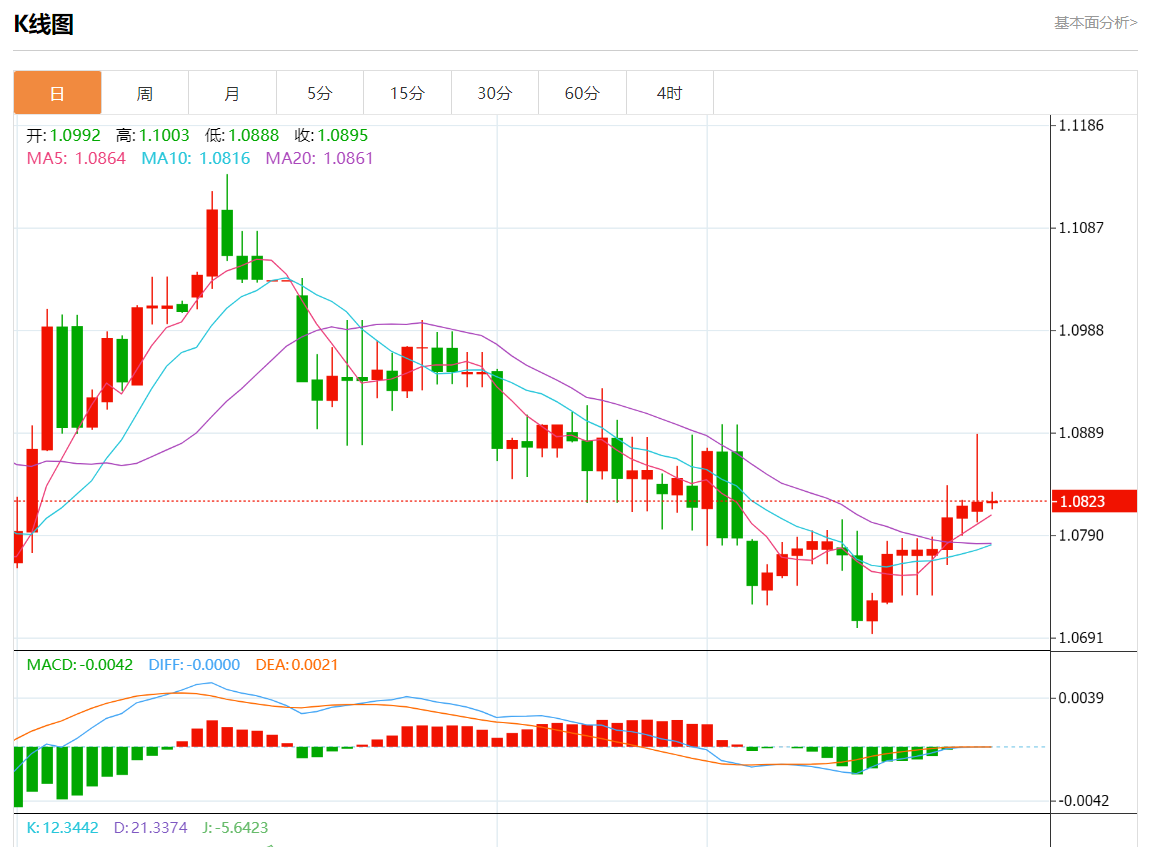周五欧市盘中,欧元/美元最新报1.0824,日图涨0.02%.