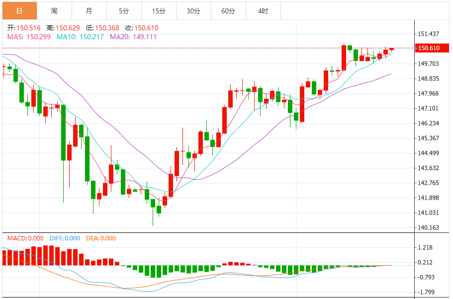 周五(2月23日),美元/日元上涨,暂报150.624,涨幅0.06%。