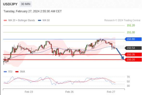 在 150.80 之下,看跌,目标价位为 150.35 ,然后为 150.20 。