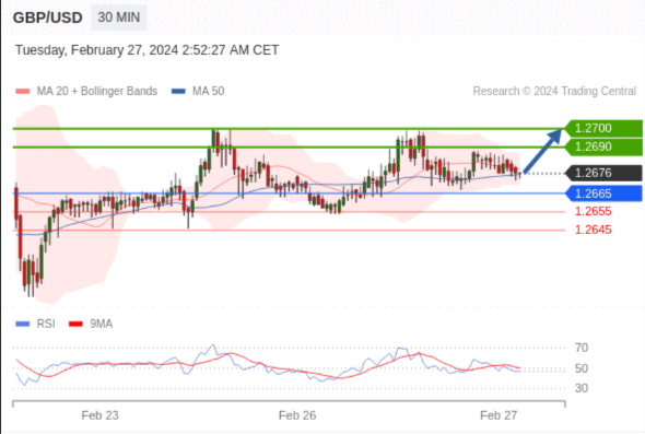 在 1.2665 之上,看涨,目标价位为 1.2690 ,然后为 1.2700 。