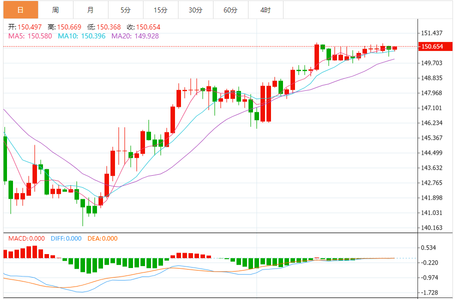 周三(2月28日),美元/日元上涨,暂报150.666,涨幅0.10%。