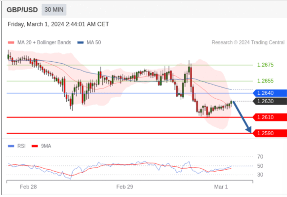 在 1.2640 之下,看跌,目标价位为 1.2610 ,然后为 1.2590 。