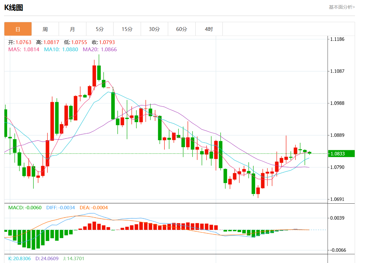 周四欧市盘中,欧元/美元最新报1.0834,日图跌0.04%.